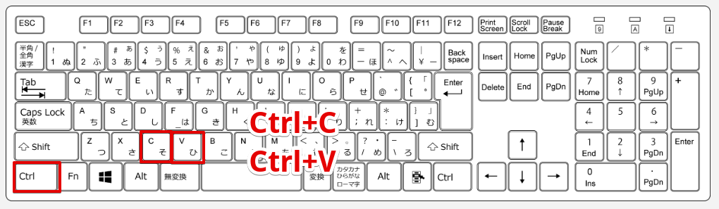 ほかにもコピーをすることができるショートカットキーもありますが、まずはCtrl