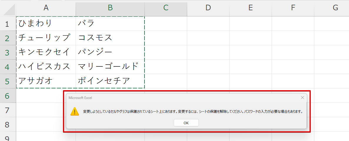 貼り付けたいシートが保護されていると、データが貼り付けできません。