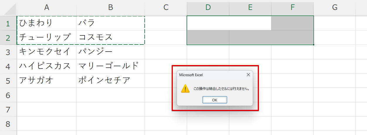 貼り付け先の範囲がコピー元と一致していない可能性があります。