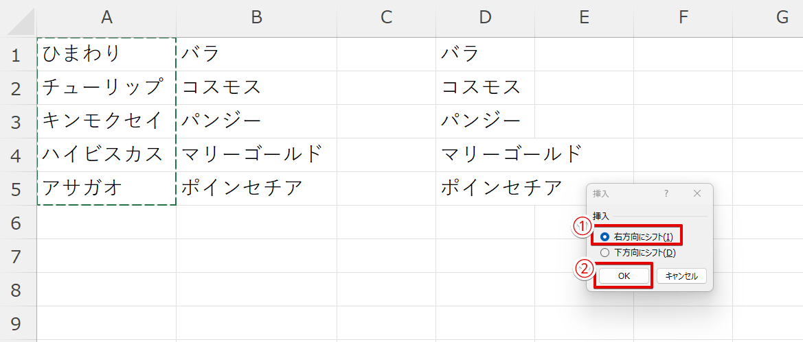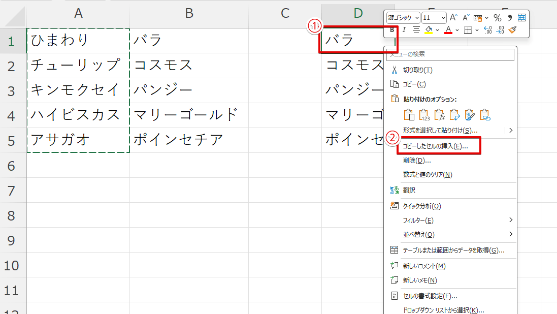 既存のデータを残したまま、新しいセルを追加して貼り付けられます。