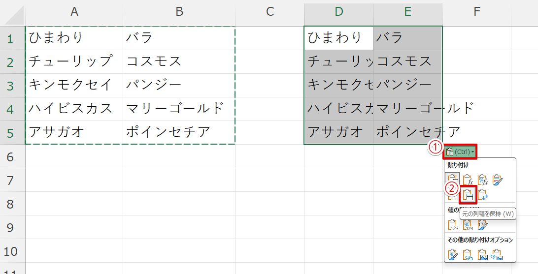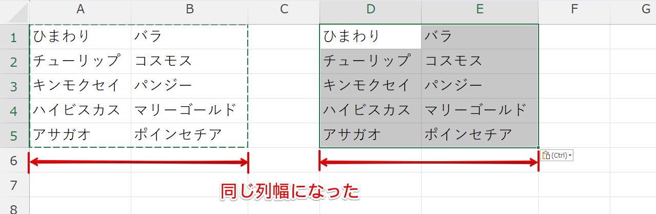 Ctrl+C→Ctrl+Vを行ってください。 - 貼り付けるとデータがずれてしまいます。